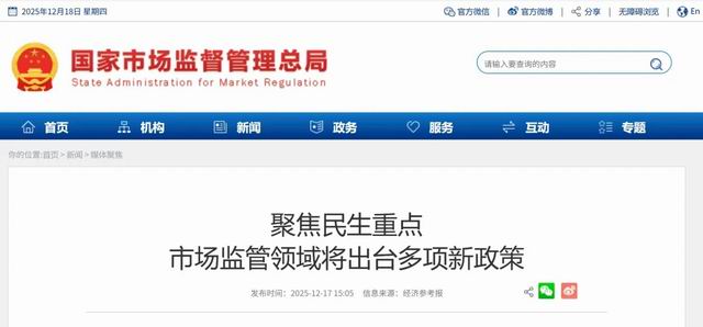 12月16日,在市场监管总局四季度新闻发布会上,记者获悉,围绕规范平台经济、强化食品安全、加强反垄断反不正当竞争、加强和保障纤维制品质量安全监管等多个民生重点领域,市场监管总局将出台多项新的政策文件。